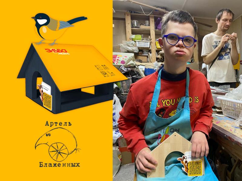 Забота о ближних. Кормушки создавались руками 25-ти молодых людей, имеющих ментальную инвалидность. Это работники Артели Блаженных, организованной Благотворительным фондом помощи инвалидам и людям с нарушением развития.