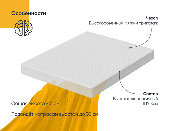 Топпер CloudLight — отличный способ улучшить спальное место без замены матраса. Основой служит современная высокотехнологичная пена, которая дарит комфортную упругость и эффективно выравнивает поверхность. Общая высота топпера — 5 см.